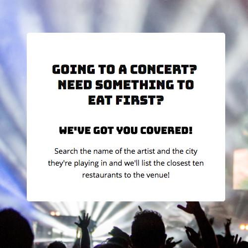 An app for finding nearby restuarants within a certain radius of concert venues using API calls. Built with: