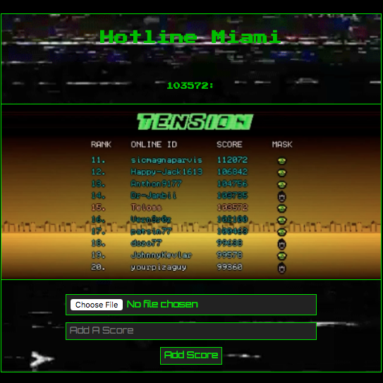 An app for users to upload and track high scores that they've set in video games. Built with: